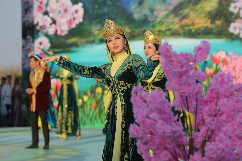 在乌兹别克斯坦首都塔什干,演员在庆祝诺鲁孜节文化演出上表演。新华社发(扎法尔摄)